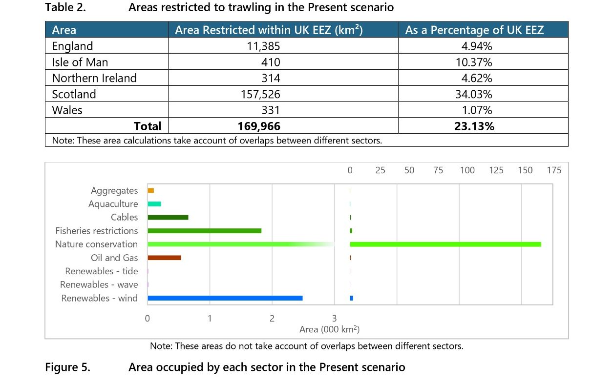 This expansion of offshore wind and associated cabling and infrastructure corridors can reduce the extent of fishing grounds available to commercial fleets, a phenomenon industry representatives describe as “marine spatial squeeze.” Commentary on these developments has warned that rapid offshore renewable deployment could see large areas of productive Scottish waters become less accessible to fishing activity by 2050, posing risks to catch rates and coastal employment without careful planning and co-design (NFFO and SFO, 2022) (Figure 1, Figure 2). Stakeholders in the Scottish fishing sector have called for stronger assurance that marine planning frameworks will balance renewable energy development with the needs of fishing communities, emphasising early engagement and co-location strategies to reduce conflict and support coexistence.